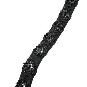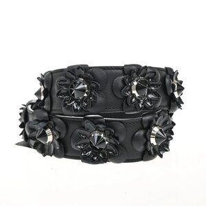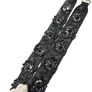 FENDI Logo Bag Shoulder Strap Flower Studs Leather Black SHW Italy 30YH453