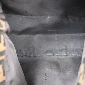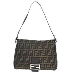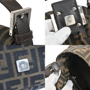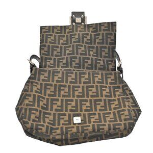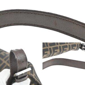 FENDI Logo Mamma Zucca Pattern Shoulder Bag Canvas Leather Brown Italy 29RF485