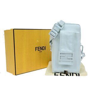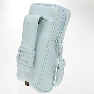 FENDI Logo Mini Shoulder Bag Phone Case Nylon Leather Light Blue Italy 96KB086