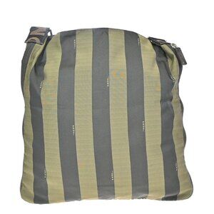 FENDI Logo Pequin Shoulder Bag Nylon Leather Khaki SHW Italy 04KA863