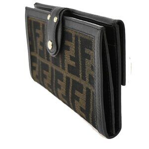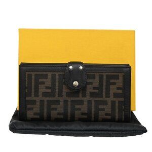 FENDI Logo Zucca Pattern Bifold Wallet Canvas Leather Brown Black 60RF544