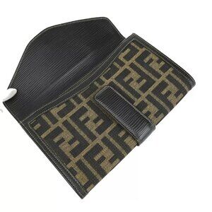 FENDI Logo Zucca Pattern Bifold Wallet Purse Canvas Leather Brown Black 37RJ803