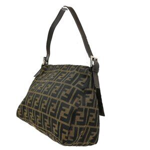 FENDI Logo Zucca Pattern Hand Bag Canvas Leather Brown SHW Italy