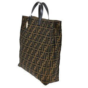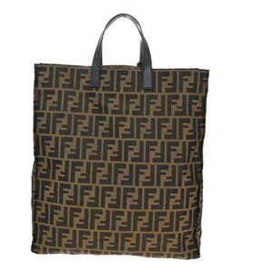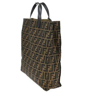 FENDI Logo Zucca Pattern Hand Tote Bag Canvas Leather Brown GHW Italy 77KB416