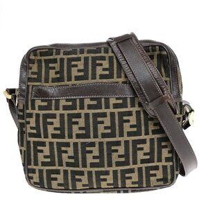 FENDI Logo Zucca Pattern Shoulder Bag Canvas Leather Brown SHW Italy