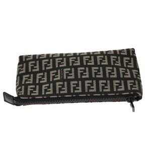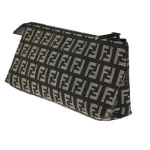 FENDI Logo Zucchino Pouch Hand Bag Canvas Leather Brown Silver 38KB202
