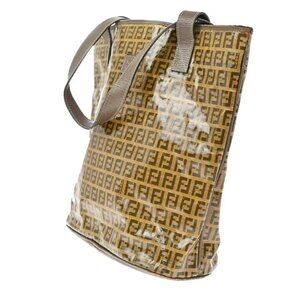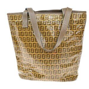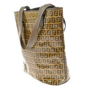 FENDI Logo Zucchino Shoulder Tote Bag Coating Canvas Leather Brown Italy