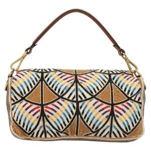 FENDI Mamma Baguette Shoulder Bag Beads Beige Gold