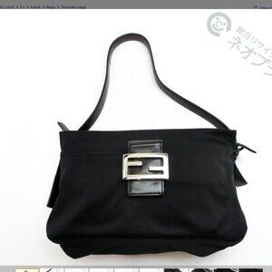 FENDI Mamma Baguette Shoulder Bag Nylon Black 2321 26566 009 Auth VINTAGE