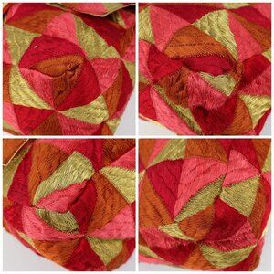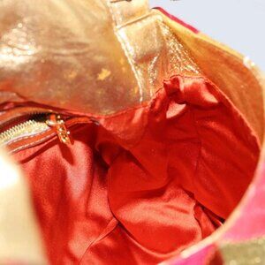 FENDI Mamma Baguette Shoulder Bag Satin Red Gold Auth 144979