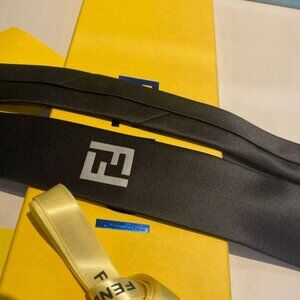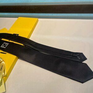 FENDI Men's Black Silk Tie with Logo