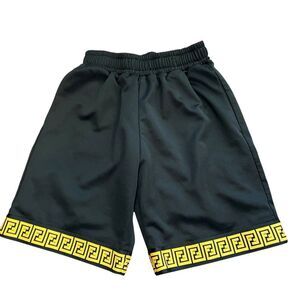 Experience the perfect blend of style and comfort with Fendi's athletic shorts, featuring a striking black and gold color scheme. The geometric pattern along the hem adds a unique touch to these mid-thigh length shorts, making them ideal for both casual outings and athletic activities.