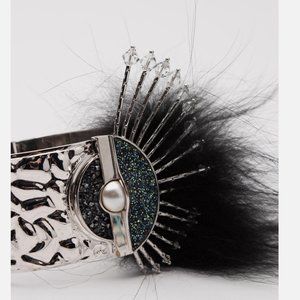 Authentic Fendi Black Fox Fur Swarovski Crystal Cuff Bracelet