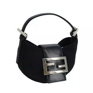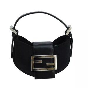 FENDI Mini Croissant Hand Bag Nylon Black Silver Auth