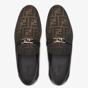 FENDI O'Lock Olock FF Jacquard Logo Leather Loafers Dress Shoes Mens