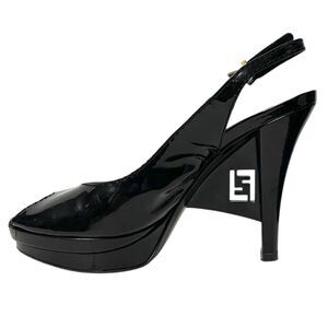 FENDI Patent Leather Slingback Logo Heel Peeptoe Sandals 37