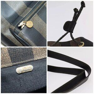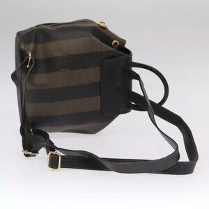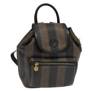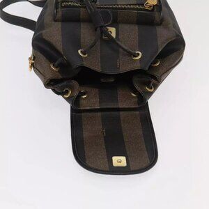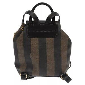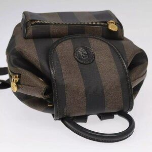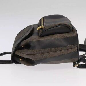 FENDI Pecan Canvas Backpack Brown Black gold Auth