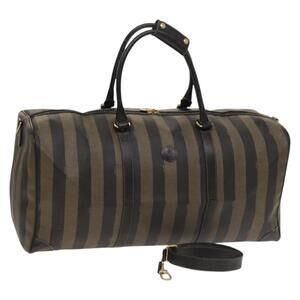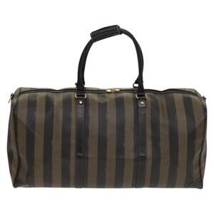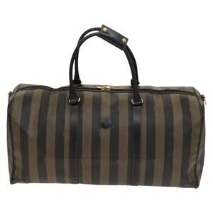 FENDI Pecan Canvas Boston Bag Pvc Black Brown
