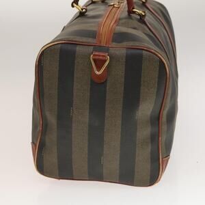 FENDI Pecan Canvas Boston Bag Pvc Black Brown Gold