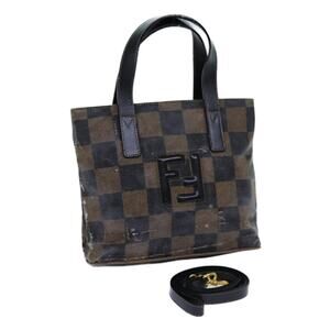 FENDI Pecan Canvas Hand Bag Brown Black