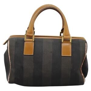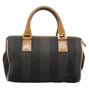 FENDI Pecan Canvas Hand Bag Brown Black Gold