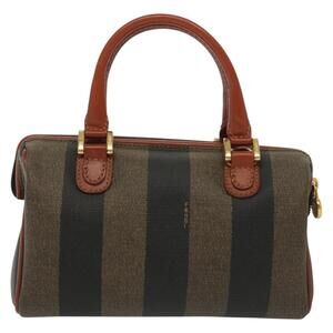 FENDI Pecan Canvas Mini Hand Bag Pvc Brown Black Gold