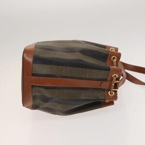 FENDI Pecan Canvas Shoulder Bag Pvc Black Brown