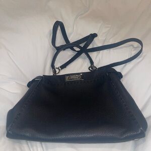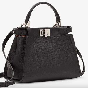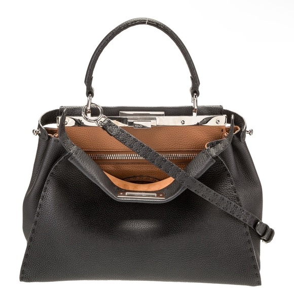 FENDI Peekaboo SMALL Black Saddle Brown Selleria Bag 1048 Hand-Sewn Topstitch