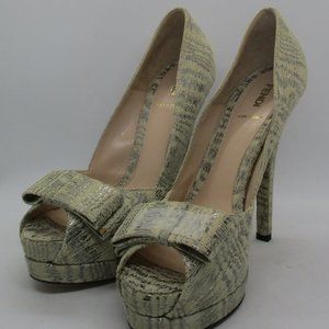 FENDI Peep Toe Stiletto Heel Pumps Snakeskin Pattern Size EU 39.5 US 8.5