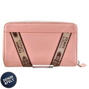 FENDI Pink Serelia Continental Long Leather/Canvas Round Full Zip Wallet 🩷🤎