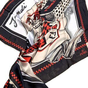 FENDI Red Black Abstract Art FF Scarf Square Silk Carre 90