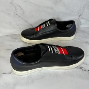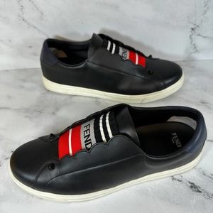 FENDI Rockoko Sneakers Slip On Scallop Black Leather 39/8