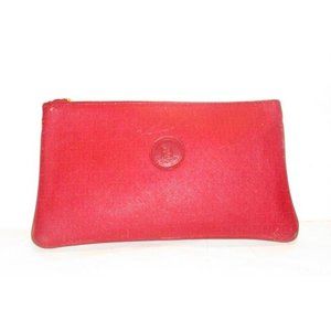 This vintage, zip top, clutch by Fendi has an edgy modern look that is timeless! It is a true red coated canvas and leather with a Zucchino or small F logo design throughout. The purse is petite, but it can hold quite a bit- the essentials and then some! It has gold engraved hardware throughout. This early piece from Fendi in a hard to find red color and iconic print is perfect for a night out or if you travel light! Don't miss out!