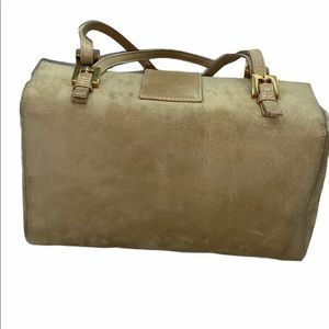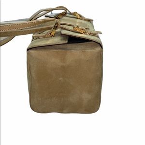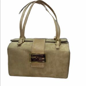FENDI SUEDE BOX BAGUETTE BAG.. it’s like a box!! SOOO super cute!! Mustard color suede with leather straps. Gold tone accents and glitter!!! Interior is brown satin. Love this bag. Could be super casual or an evening bag. May show very minor signs of use. Authentic.