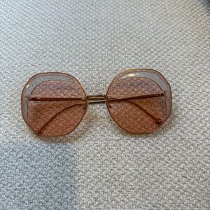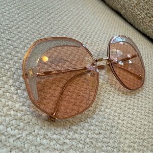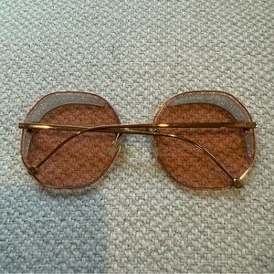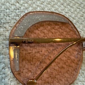 New and never worn. Make a statement with Fendi Sunglasses - FF0358S in coral, a captivating choice for women who embrace bold and feminine style. Crafted in Italy, these large round sunglasses feature a luxurious gold metal frame that adds a touch of glamour to your look. The pink solid color lenses exude sophistication and offer both style and protection. With a 19mm bridge and 140mm temple/arm, these sunglasses ensure a comfortable and fashion-forward fit. Make a bold fashion statement with the FF0358S-1N5U1 model – a true symbol of high-end quality and Italian excellence.