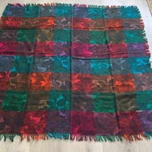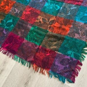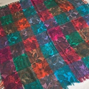 FENDI Scarf Shawl Wrap blanket Multicolor Colorful Art To Wear Vintage Authentic