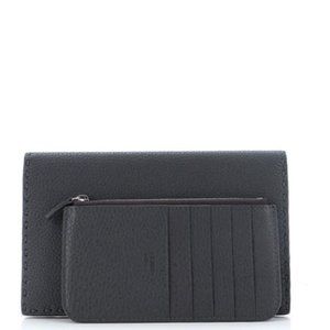 FENDI Selleria Leather Clutch Wallet in Gray with Silver Hardware