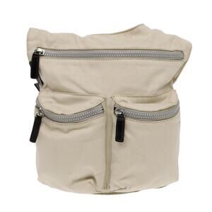 FENDI Shoulder Bag Canvas Leather Beige Brown Silver