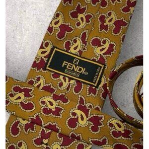 FENDI Silk Tie ITALY Brown Burgundy Beige Paisley W:3.7" EUC