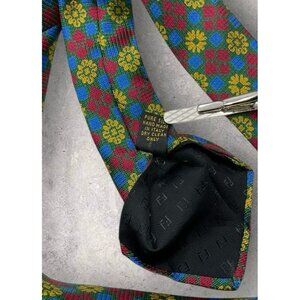 FENDI Silk Tie ITALY Green Red Yellow Geometric Floral W:3.7" EUC
