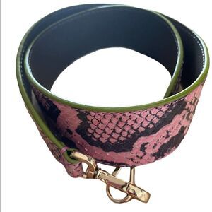 FENDI Pink PYTHON SNAKESKIN Olive Green Leather 35” Detachable Handbag Bag Strap