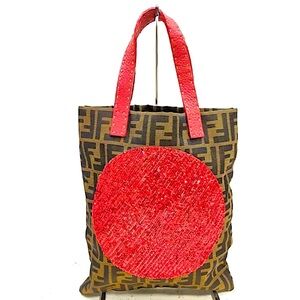 FENDI TOKYO Limited Edition Zucca Jacquard Canvas and Red Sequin Small Tote