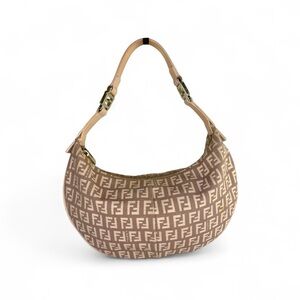 FENDI Tan FF Zucchino Small Vintage Shoulder Bag