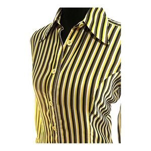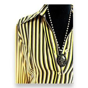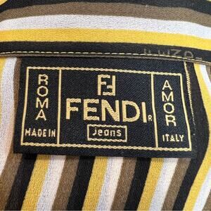 FENDI VTG Yellow Wh Brown & Black Stripe Shirt FENDI LOGO fabric & buttons