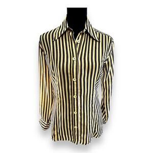 FENDI VTG Yellow Wh Brown & Black Stripe Shirt FENDI LOGO fabric & buttons