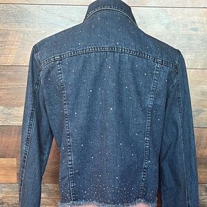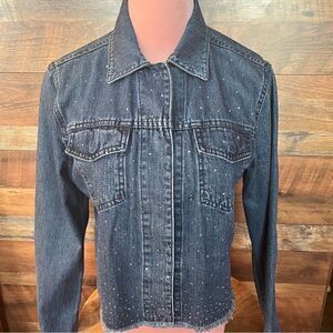 FENDI Circa 1980’s Vintage Crystal Embellished Cotton Denim Cropped Blue Jean Jacket, Ladies Size 28 (Small). Snap closure. Very lightweight. Comes with Certificate of Authenticity/$1,750 Valuation!!!