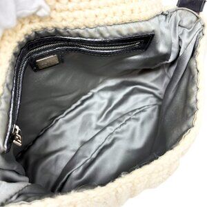 FENDI Vintage FF Logo Knit Mamma Baguette Shoulder Bag Wool Leather [106220]