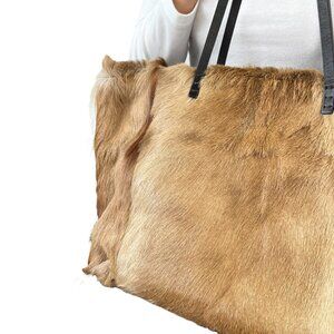 FENDI Vintage Gazelle Hair Fur Shoulder Tote Large Bag Beige Brown FF [106228]