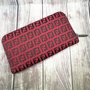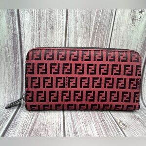 Beautiful vintage Fendi long zip around wallet. Burgundy & black. Canvas exterior, leather interior. Excellent used condition.
