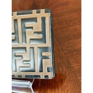 FENDI Vitello FF 1974 Embossed Bi-Fold Wallet Maya Black*VERY NICE Condition!